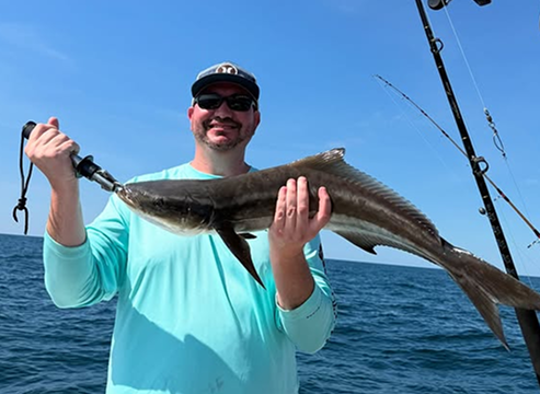 Cobia are targeted on offshore fishing charters and may also be encountered on nearshore trips depending on conditions. These trips focus on staying flexible and taking advantage of opportunities as they arise throughout the day.